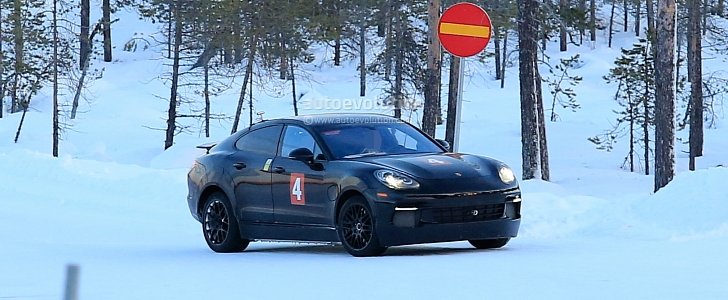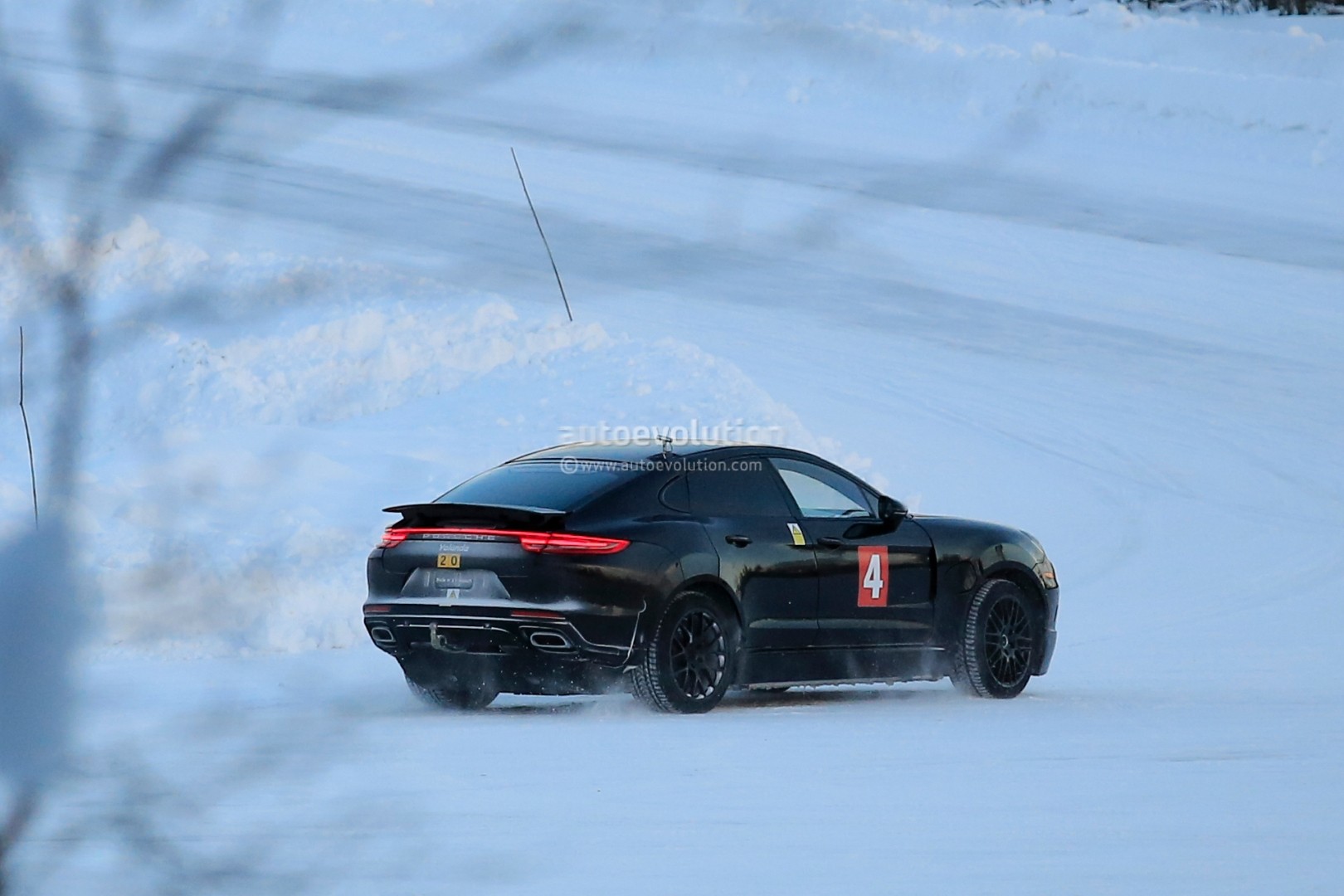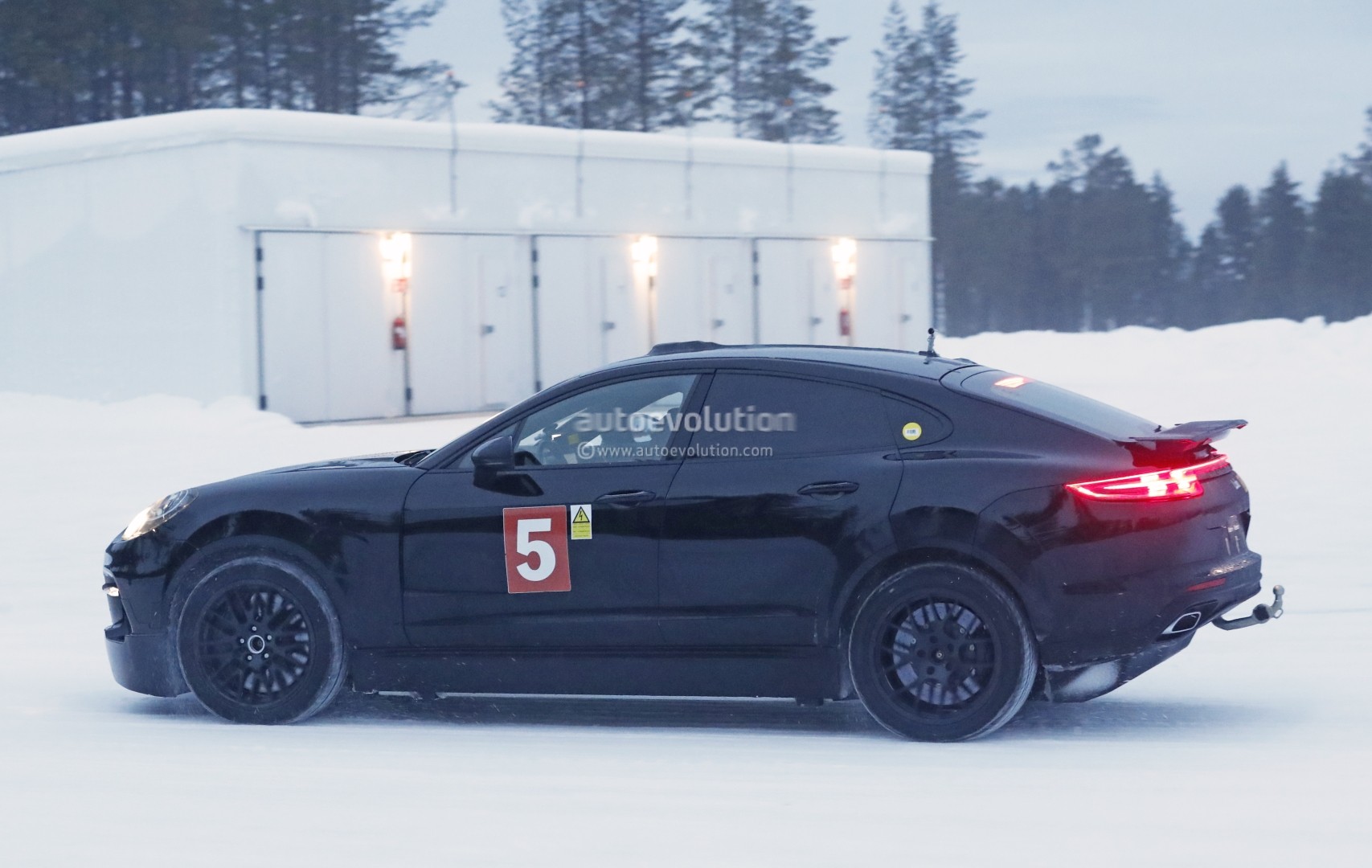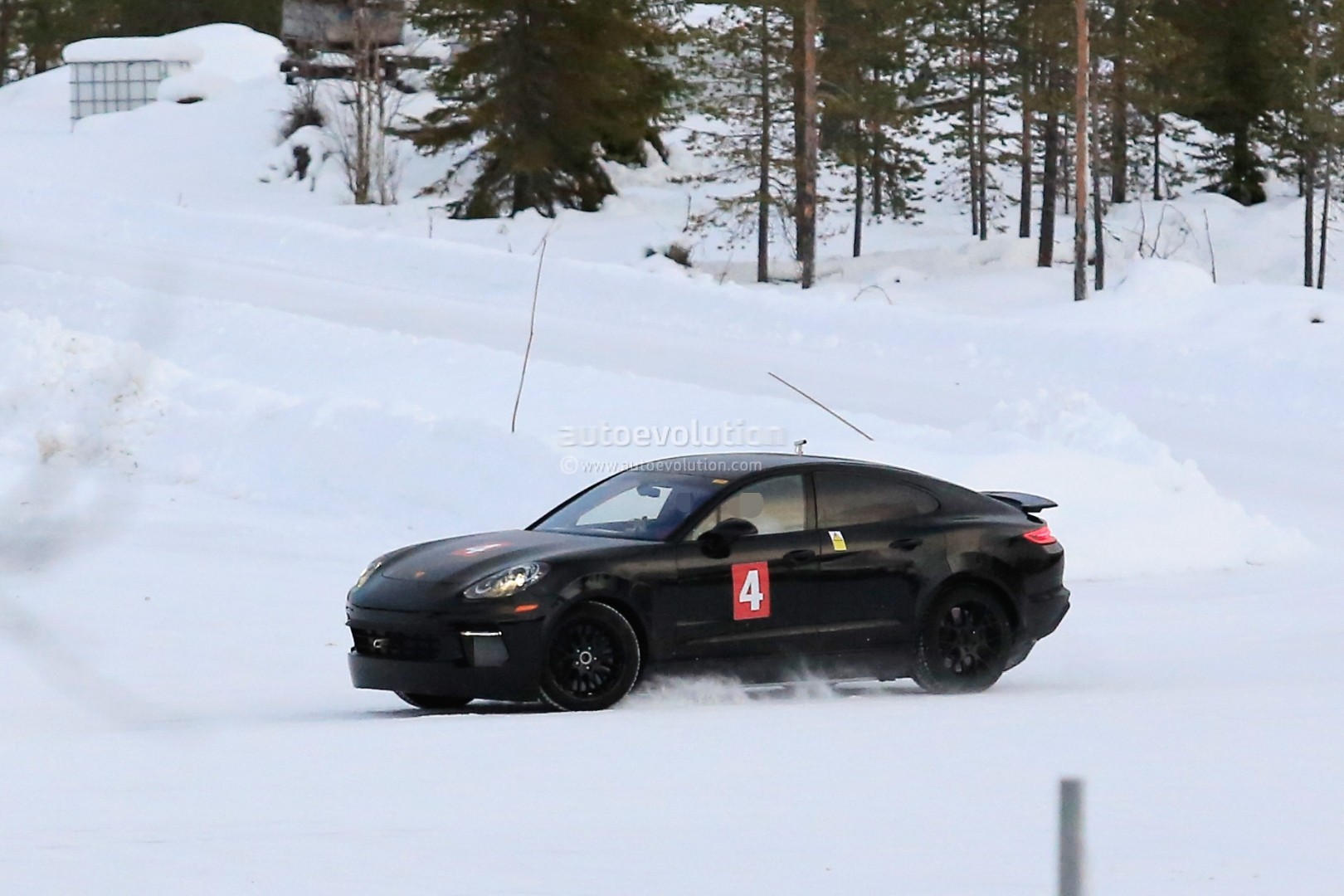 Today we get to see the real deal not just a concept. The website auto evolution managed to take some photos of a Porsche vehicle near the Arctic Circle riding in the snow. Of course, the car had some camouflage to look like a Panamera, but that was not enough to fool a trained eye. This car is taller than a Panamera. The intake of the car is sealed in the pictures, and the most obvious tell that the car has some electric warning signs on the vehicle body. Another good indicator is the port on top of the front wheel, maybe a port for charging.