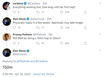 The Starship prototype is expected to hop 150 meters, or nearly 500 feet, into the air. That may represent one small hop for SN4, but it could represent one giant leap for the Starship line.Elon Musk✔@elonmusk